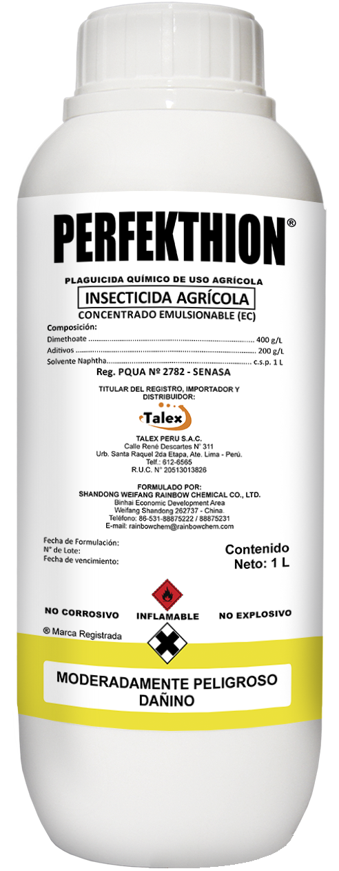PERFEKTHION es un insecticida sistémico que actúa por contacto e ingestión, su ingrediente activo afecta el sistema nervioso de los insectos, bloquea la acción de la acetilcolinesterasa, lo que ocasiona parálisis y muerte de los mismos.